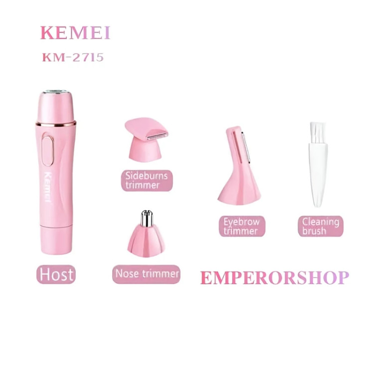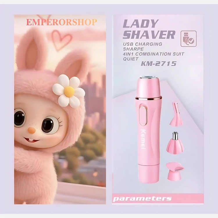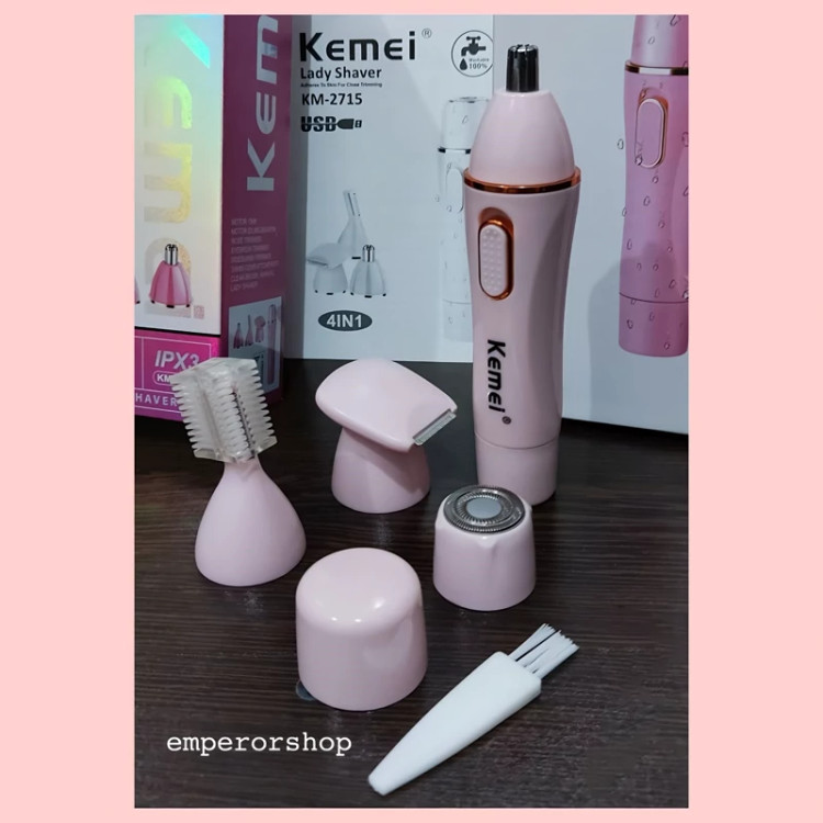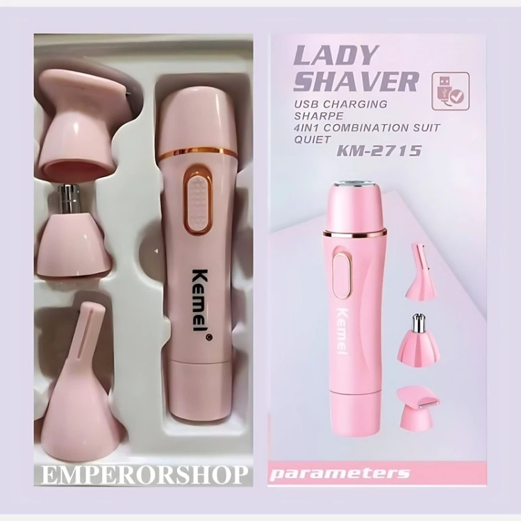 ست اصلاح 4کاره بانوان شیور ضد آب 4 کاره کیمی اصلی Kemei Km-2715 اورجینال موزن صورت و بدن زنانه شارژی با کیفیت عالی