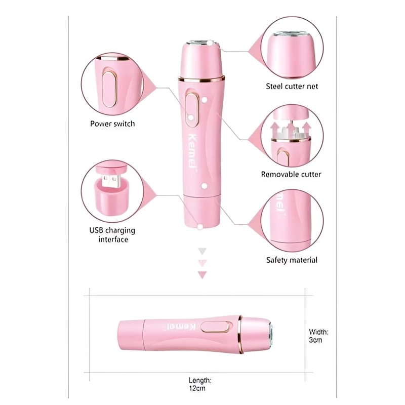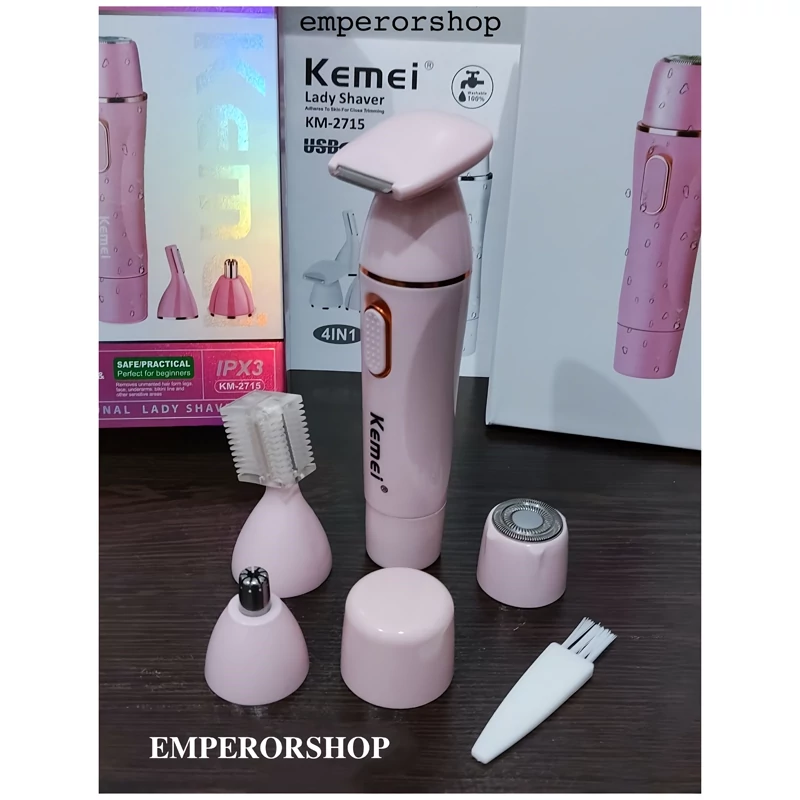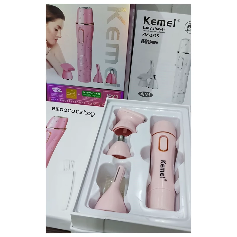 ست اصلاح 4کاره بانوان شیور ضد آب 4 کاره کیمی اصلی Kemei Km-2715 اورجینال موزن صورت و بدن زنانه شارژی با کیفیت عالی
