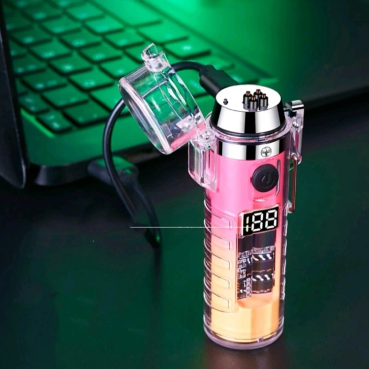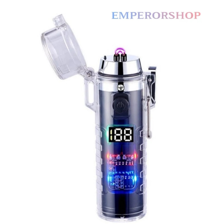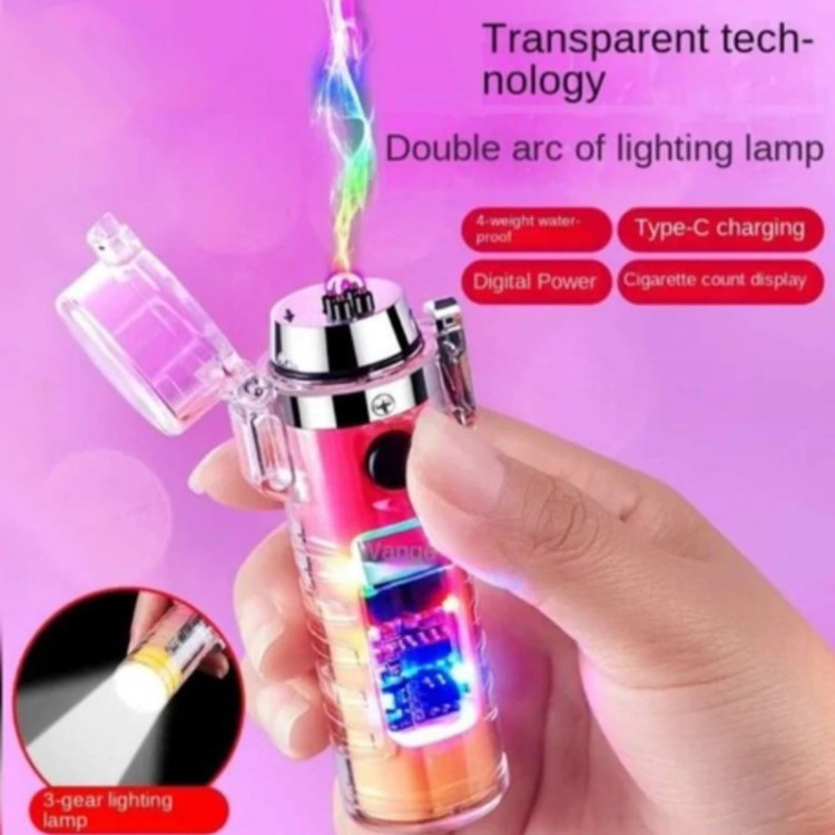 فندک پلاسمایی ضربدری لوکس دوکاره با چراغ قوه پر قدرت 3 حالته جعبه کادویی(اصلی) فندک صاعقه ای فندک شارژی الکتریکی