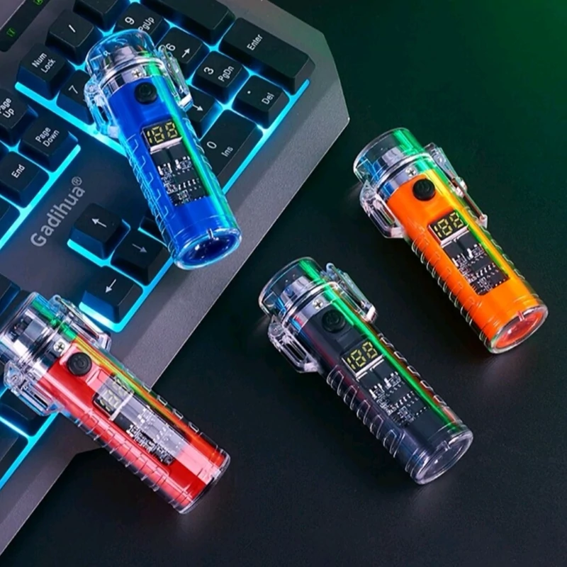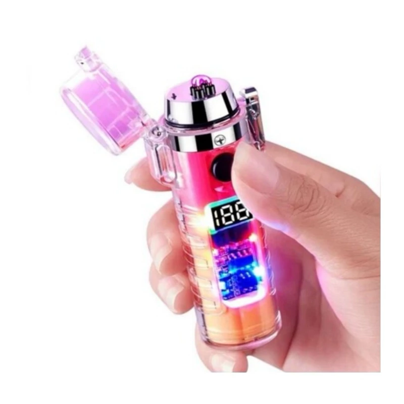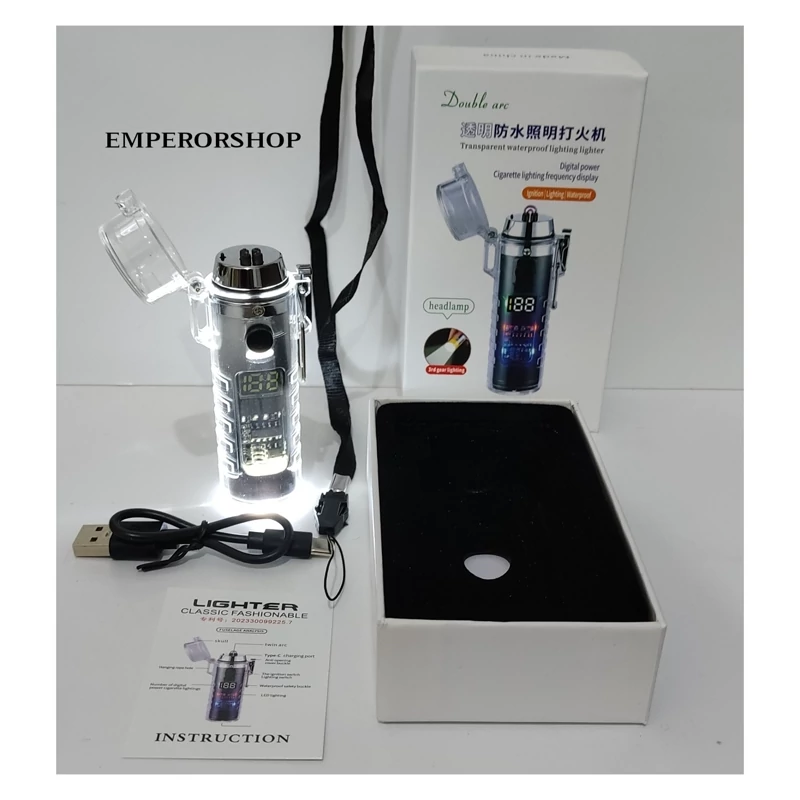 فندک پلاسمایی ضربدری لوکس دوکاره با چراغ قوه پر قدرت 3 حالته جعبه کادویی(اصلی) فندک صاعقه ای فندک شارژی الکتریکی