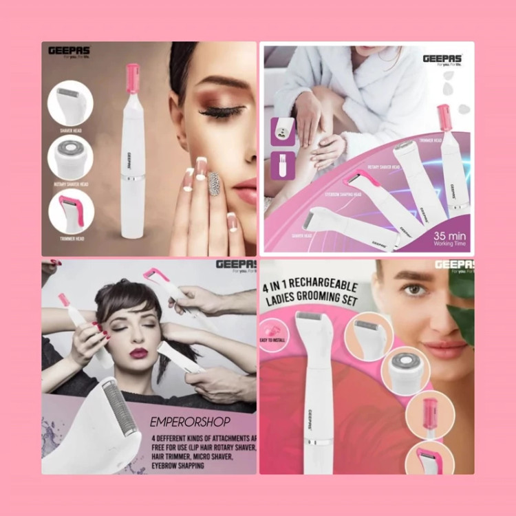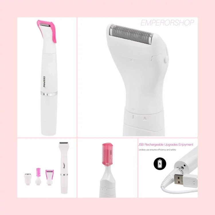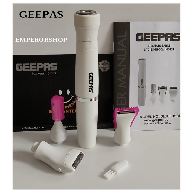 ست اصلاح صورت و بدن چهار کاره بانوان شارژی جیپاس GEEPAS مدل GLS86058 موزن صورت وبدن زنانه شیور صورت زنانه