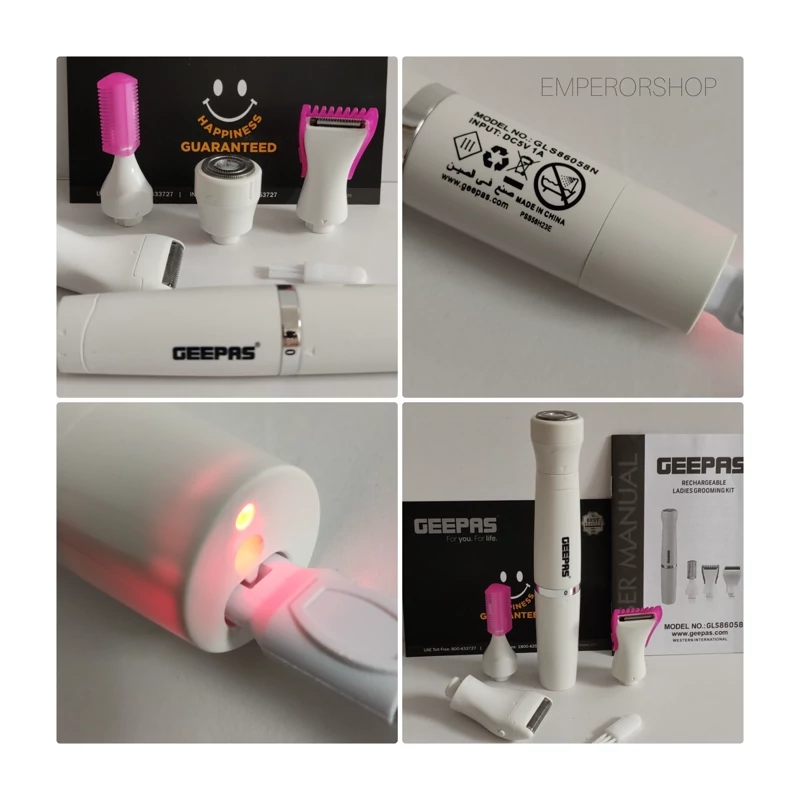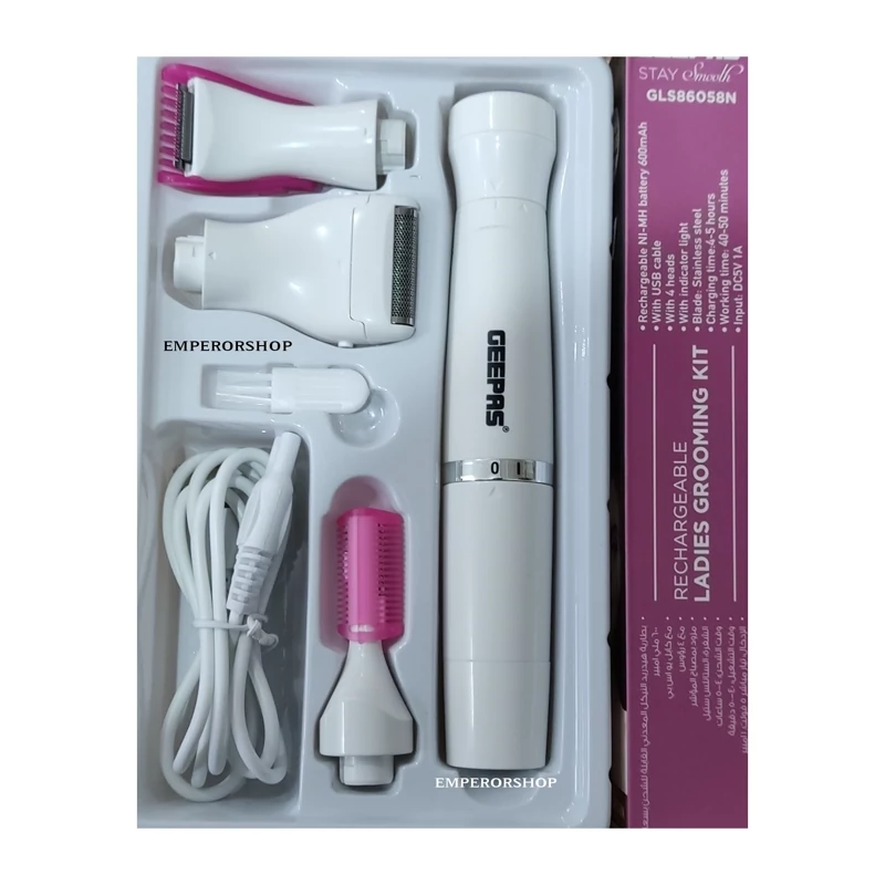 ست اصلاح صورت و بدن چهار کاره بانوان شارژی جیپاس GEEPAS مدل GLS86058 موزن صورت وبدن زنانه شیور صورت زنانه