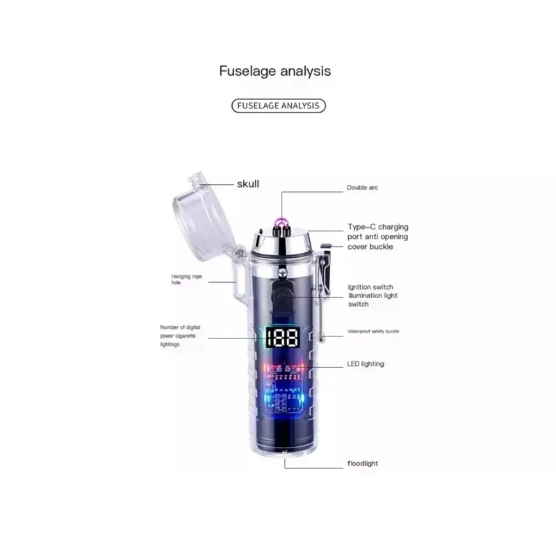 فندک الکتریکی پلاسما ضد آب ، شارژی چراغ قوه دار فندک صاعقه ای پلاسمایی