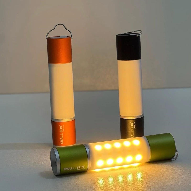 محصول اصلی برند اسمال سان SMALL SUN کیفیت بسیار عالی،شارژدهی بینظیر دارای چند حالت نوردهی آفتابی و مهتابی،کم و زیاد،چراغ بقل و چراغ جلو با قابلیت زوم،دارای حلقه آویزی،به همراه کابل شارژ