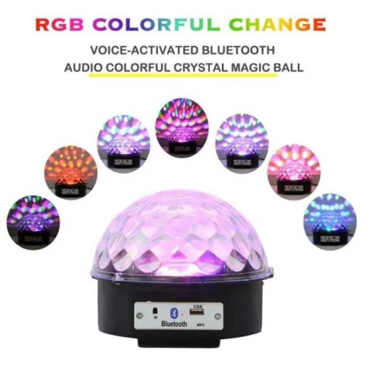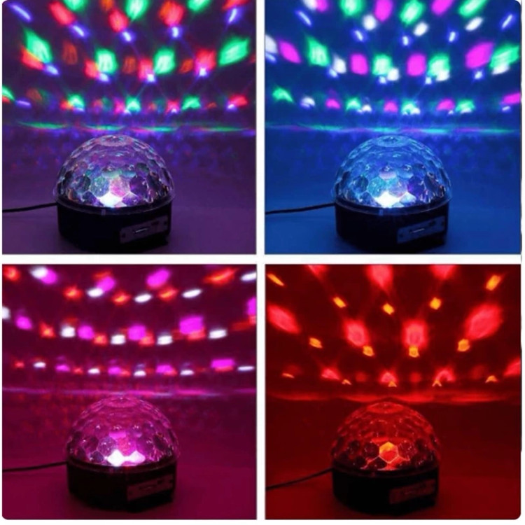 💥اسپیکر رقص نور بلوتوثی مدل Crystal Magic DJ LED خانگی با 6 چراغ ال ای دی بسیار پر نور دارای قابلیت پخش موزیک از طریق اتصال فلش به پورت USB می باشد. ✳️مناسب برای استفاده در جشن ها، مهمانی ها و مراسمات💃🕺 🔺مجهز به MP3 پلیر با پورت USB 🔺مجهز به رقص نور در قسمت بالایی با شش حالت مختلف👌