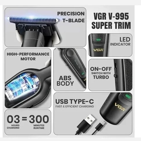 ماشین اصلاح VGR V-995 با ترکیبی از قدرت و دقت طراحی شده است. این دستگاه حرفهای با باتری 2000 میلیآمپری و زمان کارکرد 300 دقیقهای، انتخاب ایدهآلی برای آرایشگران حرفهای و استفاده شخصی میباشد. مشخصات فنی کلیدی - جنس تیغه: استیل ضد زنگ با دوام بالا - نوع عملکرد: خطزن و صفرزن حرفهای -اندازه اصلاح 0/1mmتا6mm - منبع انرژی: باتری لیتیومی 2000 میلیآمپر - زمان شارژ کامل: 180 دقیقه - مدت زمان کارکرد: تا 300 دقیقه - جنس بدنه: ABS با مقاومت بالا - طراحی: ارگونومیک برای استفاده طولانیمدت -موتور کم صدا -لوازم همراه : 4 شانه در سایزهای 1.5، 3، 4.5، 6 میلیمتر - روغن روانکننده - برس تمیزکننده - کابل شارژ-دفترچه راهنما