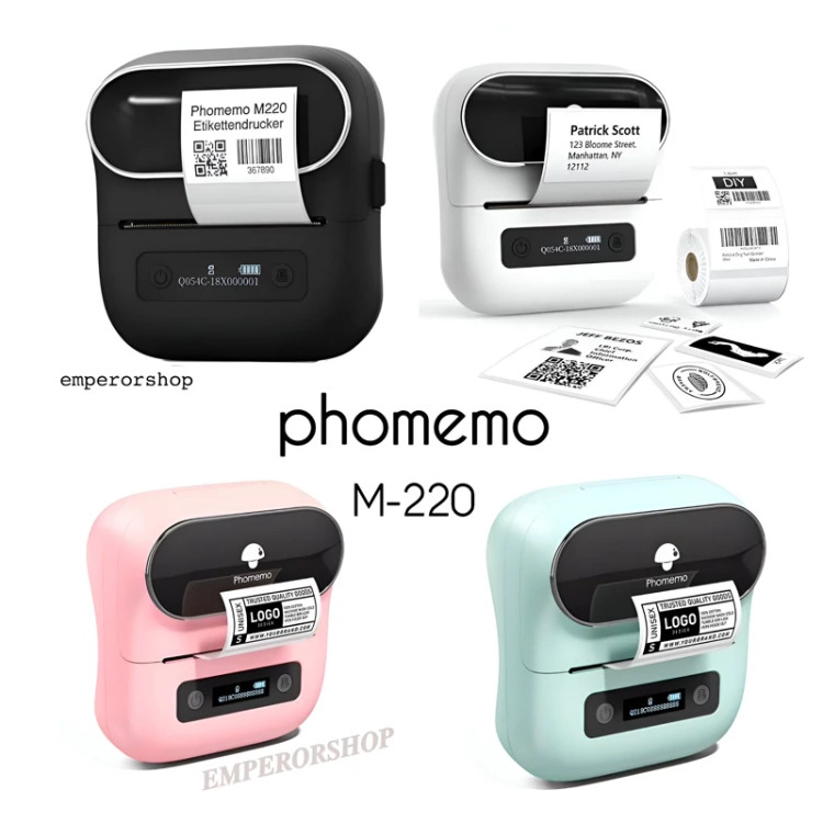 پرینتر (چاپگر) حرارتی لیبل زن شارژی بلوتوثی فوممو phomemo مدل M 220 گلوبال اورجینال همراه با رول لیبل و کابل شارژ