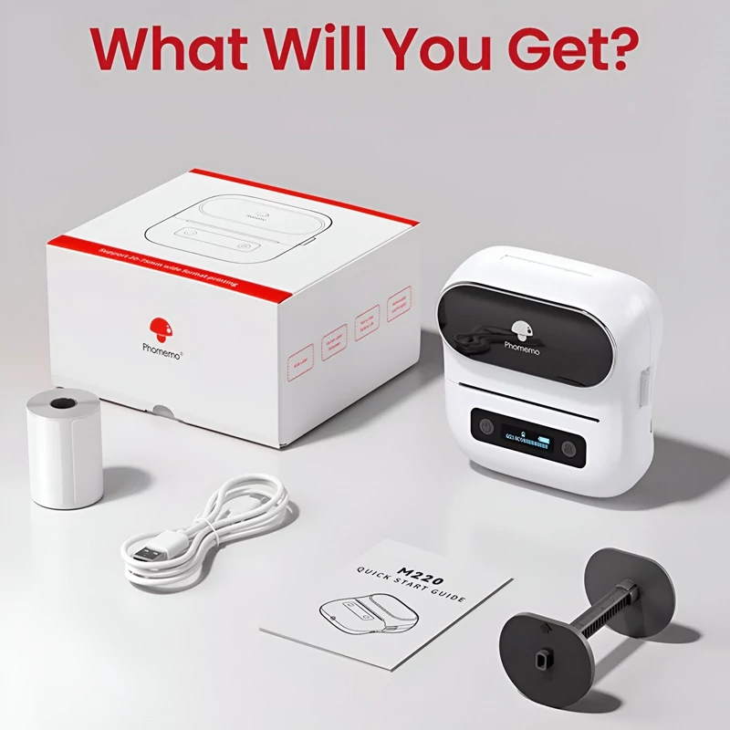 پرینتر (چاپگر) حرارتی لیبل زن شارژی بلوتوثی فوممو phomemo مدل M 220 گلوبال اورجینال همراه با رول لیبل و کابل شارژ