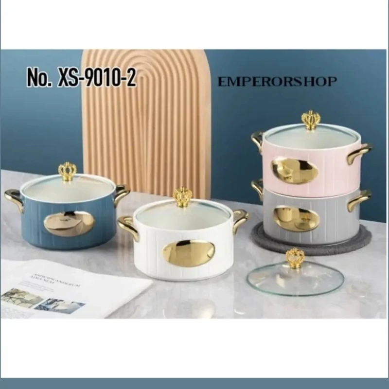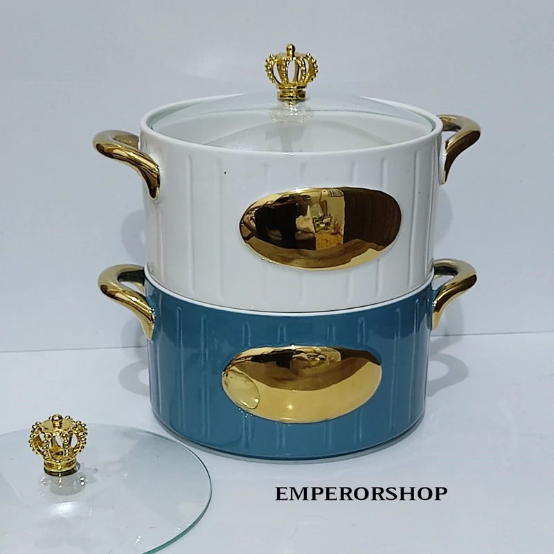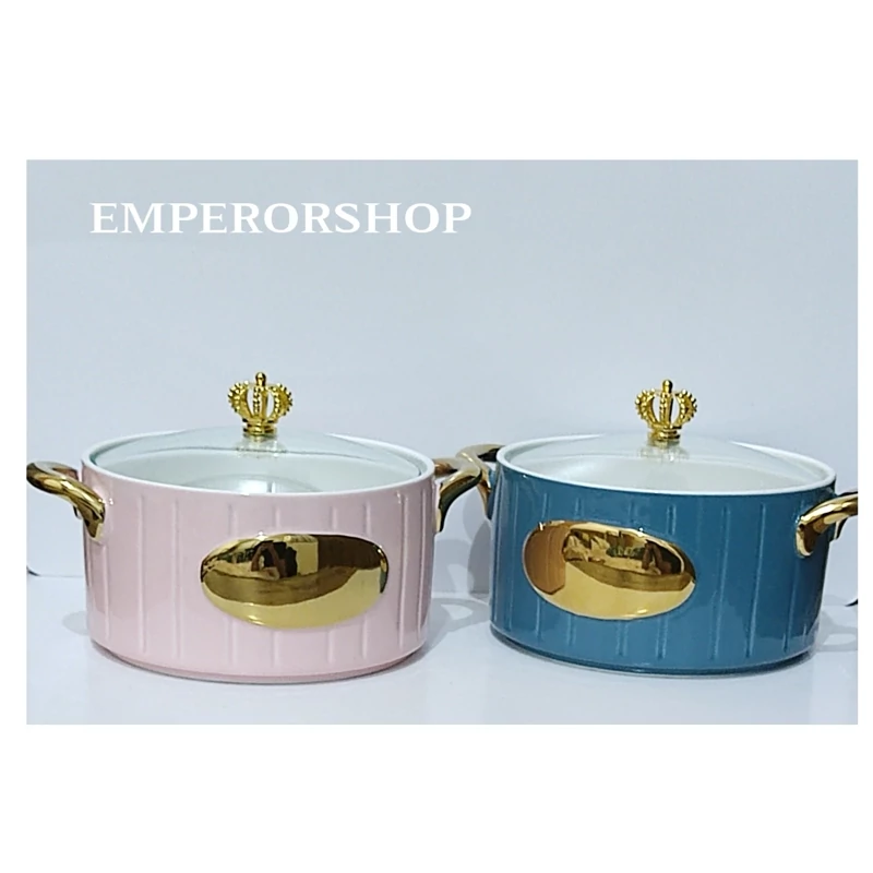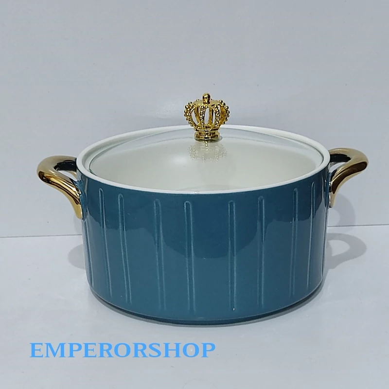 قابلمه سرامیکی سوپ خوری و دسرخوری مدل تاج طلایی درب پیرکس