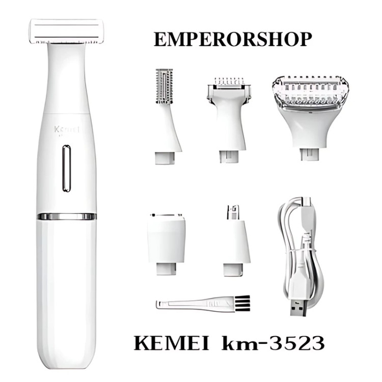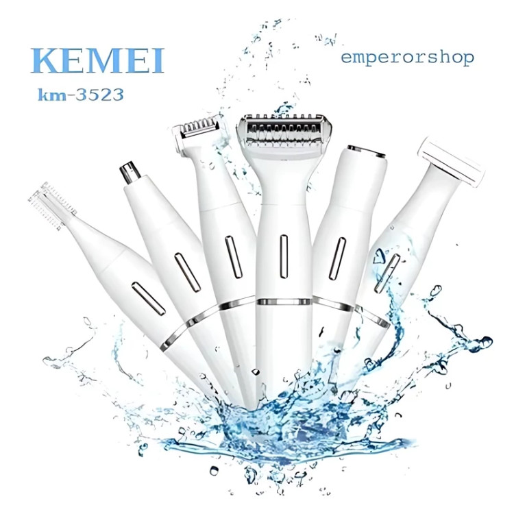 ست اصلاح صورت و بدن بانوان برند کیمی مدل KM-3523 اورجینال کاملترین موزن،بادیگروم،شیور و ست اصلاح 6 کاره شارژی کیمی اصل