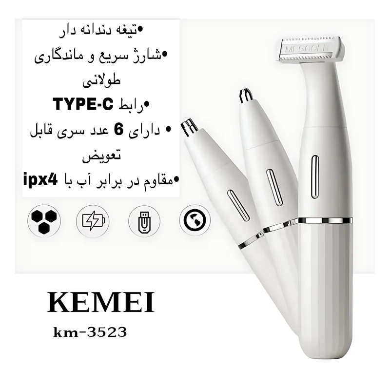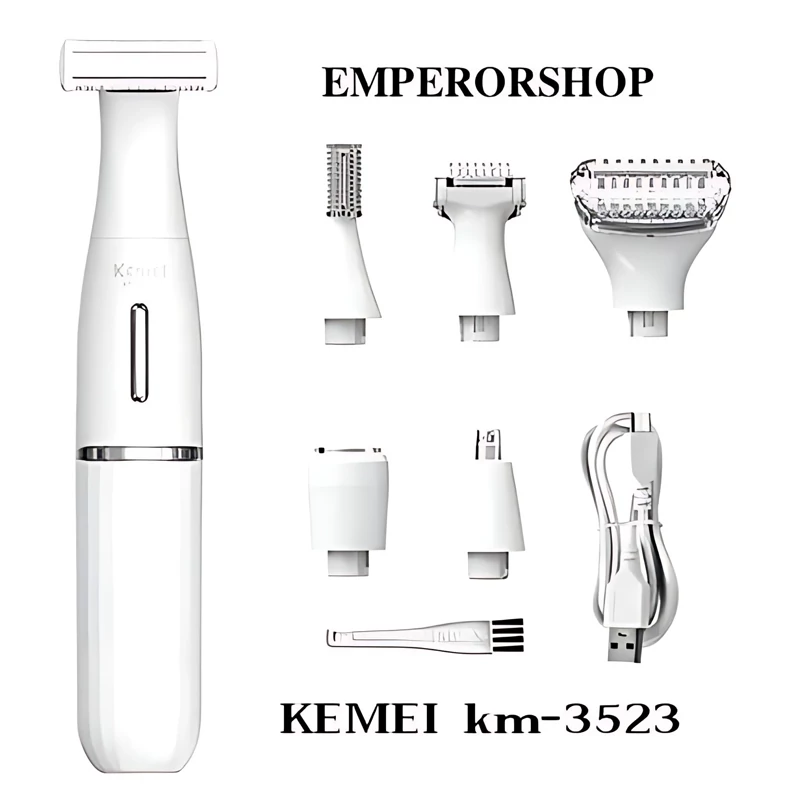 ست اصلاح صورت و بدن بانوان برند کیمی مدل KM-3523 اورجینال کاملترین موزن،بادیگروم،شیور و ست اصلاح 6 کاره شارژی کیمی اصل