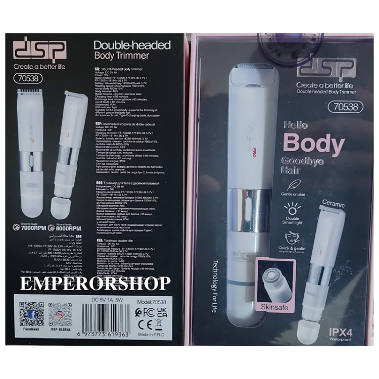 شیور صورت و ماشین اصلاح بدن دوکاره DSP اصل 70538 dsp ست اصلاح زنانه شارژی اورجینال مجهز به رینگ لایت شیور و موزن بانوان
