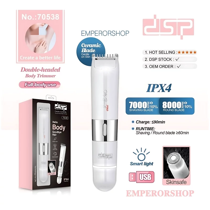 شیور صورت و ماشین اصلاح بدن دوکاره DSP اصل 70538 dsp ست اصلاح زنانه شارژی اورجینال مجهز به رینگ لایت شیور و موزن بانوان