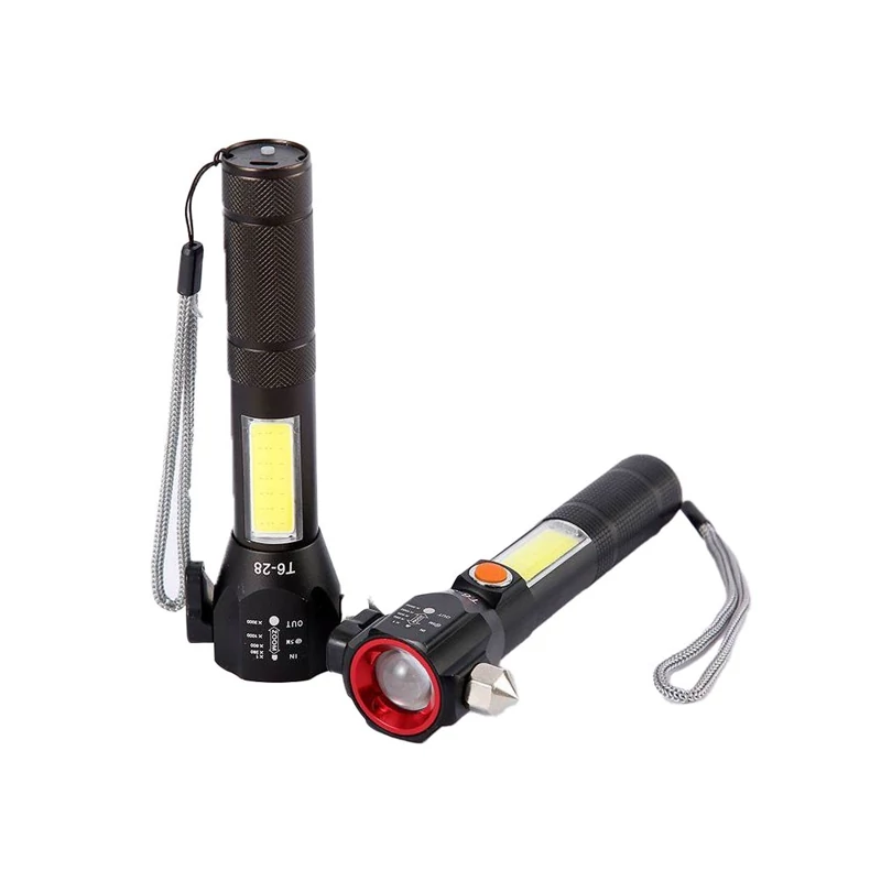 چراغ قوه چندکاره شارژی مدل T6-28 چراغ قوه، شیشه شکن چراغ چندکاره شارژی