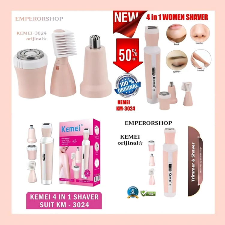 ست اصلاح موی صورت و بدن بانوان KEMEI کیمی مدل KM-3024 (اصل) موزن 4 کاره کیمی اورجینال بهترین موزن صورت و بدن زنانه