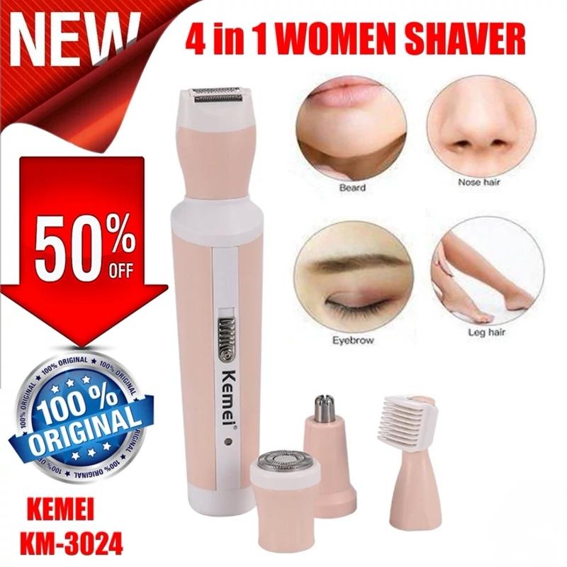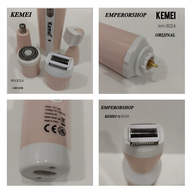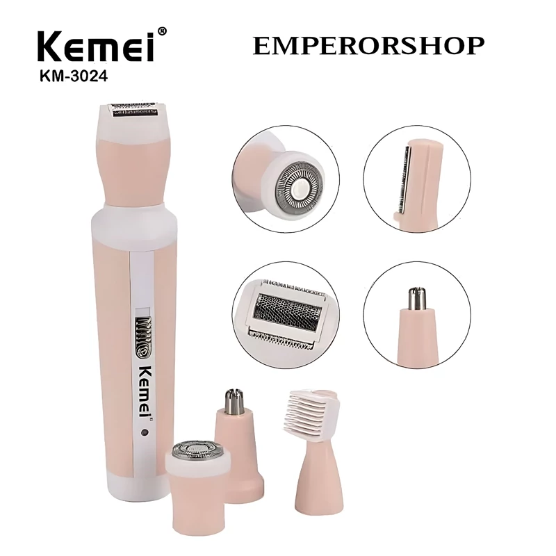 ست اصلاح موی صورت و بدن بانوان KEMEI کیمی مدل KM-3024 (اصل) موزن 4 کاره کیمی اورجینال بهترین موزن صورت و بدن زنانه