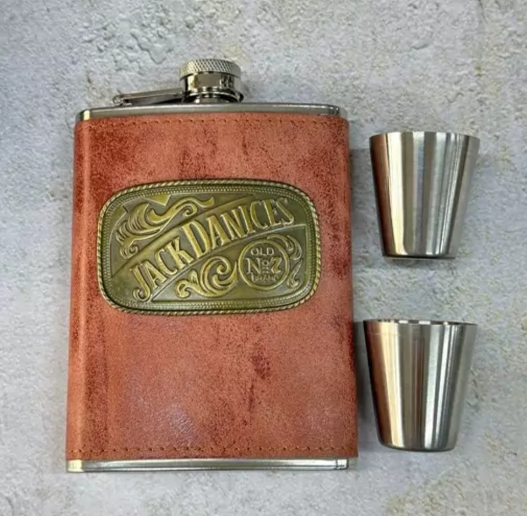 ست هیپ فلاسک بطری کتابی استیل با روکش چرم قمقمه جیبی