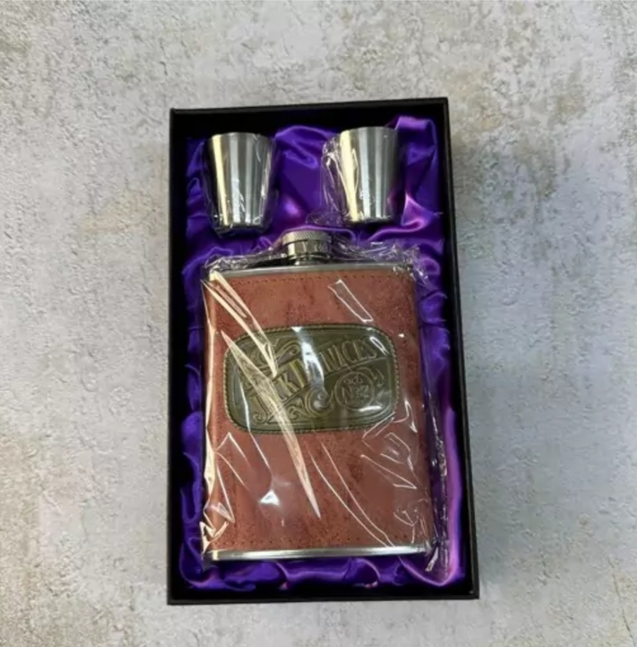 ست هیپ فلاسک بطری کتابی استیل با روکش چرم قمقمه جیبی