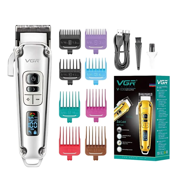 ماشین اصلاح سر و صورت حجم زن حرفه ای وی جی آر VGR اورجینال مدل V-006 (اصل) تیغه سرامیک باطری 2600 میلی آمپر
