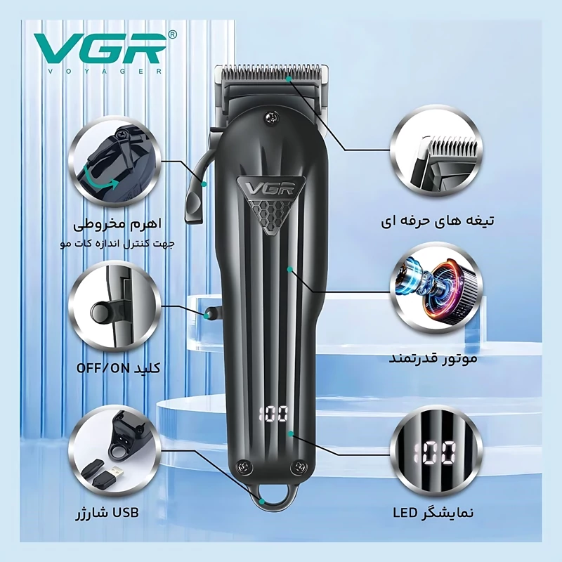 ماشین اصلاح سر صورت و بدن حرفه ای vgr حجم زن و ریش تراش اهرم دار وی جی آر VGR 282 اصل VGR V-282 Hair Clipper اورجینال