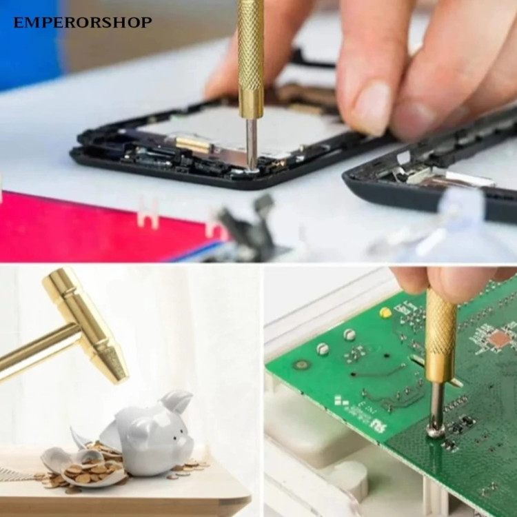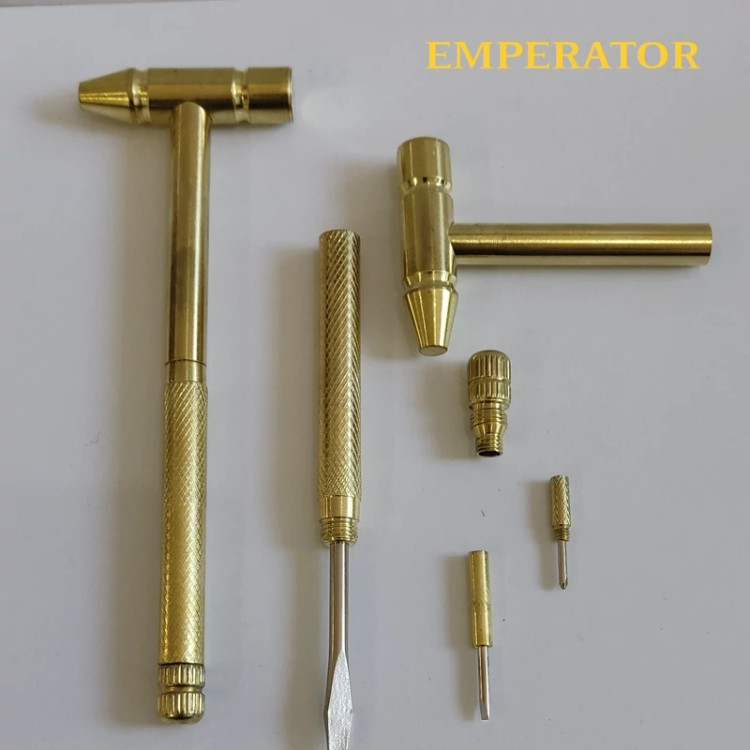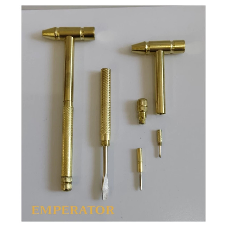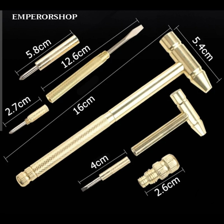 💥چکش پیچ گوشتی دار فانتزی ، نمونه ای جدید از ابزارهای چند منظوره کوچک می باشد که تولید شده از جنس فلز مقاوم با رنگ طلایی است 👌. این ابزار در حالت معمول یک مینی چکش با طول کلی 16 سانتی متر همراه با سری 5.4 سانتی متری می باشد که با توجه به فلزی بودن جنس کالا می توانید برای کارهای سبک مانند زدن میخ از آن استفاده کنید ، اما همه چیز به یک چکش کوچک ختم نمی شود ، کافی است انتهای دسته چکش را به صورت پیچی باز کنید تا شاهد بیرون آمدن یک پیچ گوشتی دو سو باشید که متناسب با نیاز می توانید از آن بهره ببرید ✅، اگر به یک پیچ گوشتی چهار سو نیاز دارید ، کافیست انتهای پیچ گوشتی دو سو را نیز باز کنید تا این پیچ گوشتی خارج و در اختیار شما برای استفاده قرار گیرد 👌✅. بازم هم ادامه دارد و این بار انتهای دسته پیچ گوشتی چهار سو را باید باز کنید تا بتوانید دو پیچ گوشتی دو سو و چهار سوی کوچک تر را ببینید که از آنها برای باز و بسته کردن پیچ های کوچکتر استفاده می شود . پس در نهایت با داشتن چکش چند کاره ، یک چکش ، دو پیچ گوشتی دو سو و دو پیچ گوشتی چهارسو در ابعاد مختلف را در اختیار خواهید داشت که سبک ، کم حجم و با قابلیت حمل و جابه جایی آسان هستند🔸 بنابراین همواره به همراه شما برای استفاده در موقع نیاز خواهند بود✔️