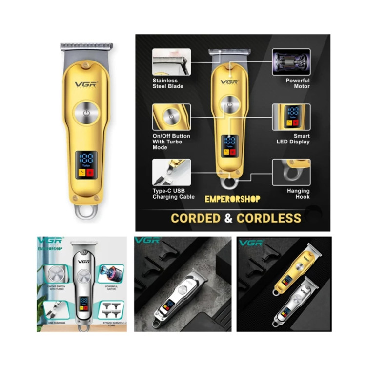 ماشین اصلاح VGR290 وی جی آر 290 (اصلی) ریش تراش صفرزن خط زن vgr 290 دارای نمایشگر و حالت توربو شارژی
