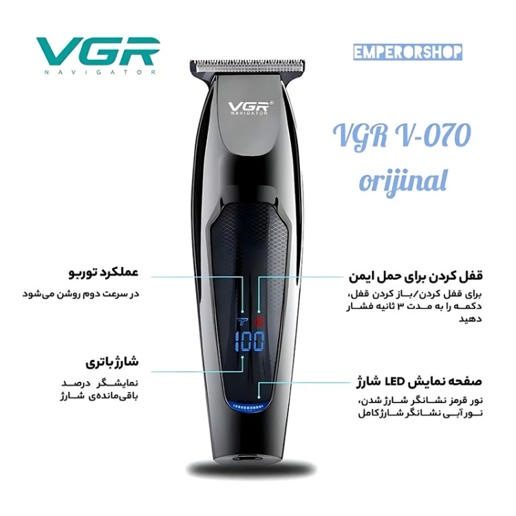 ماشین اصلاح ریش تراش خط زن صفر زن VGR مدل V-070 اصلی وی جی آر مدل V-070 اورجینال با موتور توربو کیفیت عالی موزن موزر