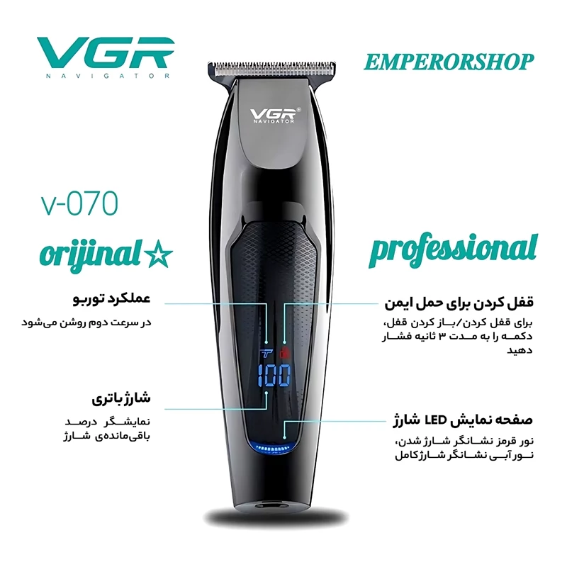 ماشین اصلاح ریش تراش خط زن صفر زن VGR مدل V-070 اصلی وی جی آر مدل V-070 اورجینال با موتور توربو کیفیت عالی موزن موزر