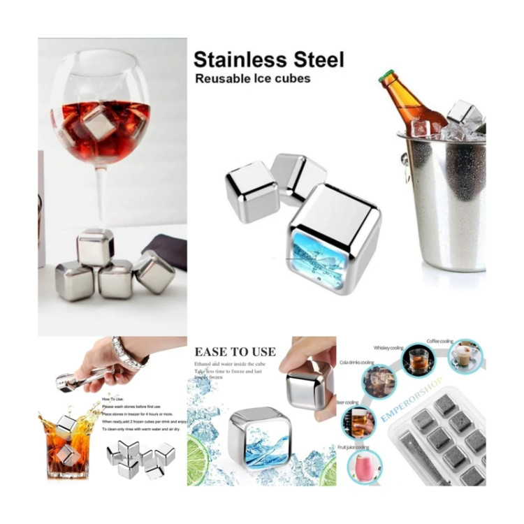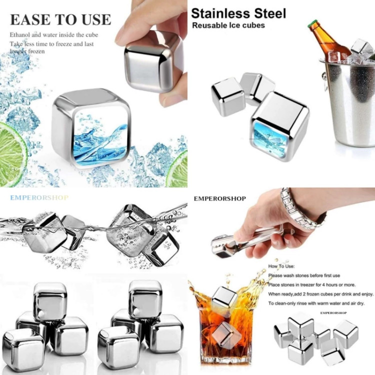 قالب یخ مکعبی استیل 4عددی وسیله ای کاربردی و جدید برای خنک کردن انواع نوشیدنی هاست. یخ های مکعبی از جنس استیل ضد زنگ هستند که داخل آن از آب و مایع خنک کننده پر شده است. کافیست حبه یخ های استیل را به مدت 2 ساعت درون فریزر قرار دهید تا مایع درون آن یخ زده و بعد داخل لیوان نوشیدنی خود بیاندازید. ویژگی اصلی این مکعب های استیل حفظ کردن طعم مایعات است که بدون تغییر در طعم و رنگ ، نوشیدنی شما را سرد خواهد کرد.