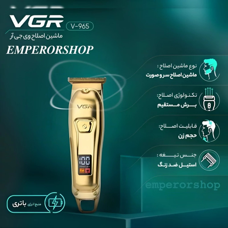 ▪️ ماشین اصلاح موی سر و صورت وی جی ار مدل V-965 یک ابزار پیشرفته برای اصلاح موهای سر و صورت و بدن است. این ماشین اصلاح دارای تجهیزات همراهی همچون سیم شارژ، روغن و برس تمیزکننده است. نوع اصلاح این ماشین اصلاح خط زن و حجم زن است و برای اصلاح موهای سر و صورت مناسب است▪️ تعداد شانههای این ماشین اصلاح 4 عدد است که به شما امکان میدهد موهای خود را به صورت دقیق و مطلوب اصلاح کنید.