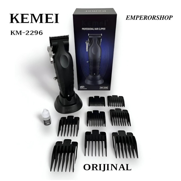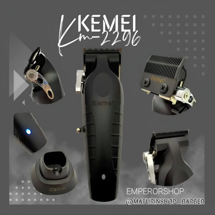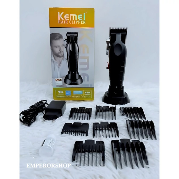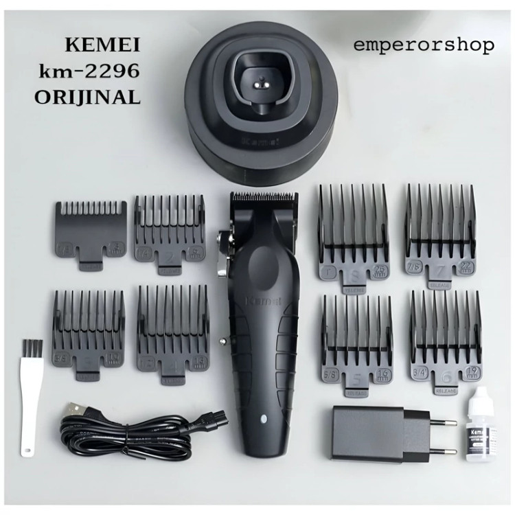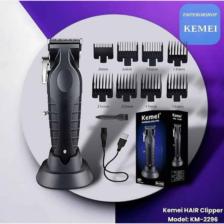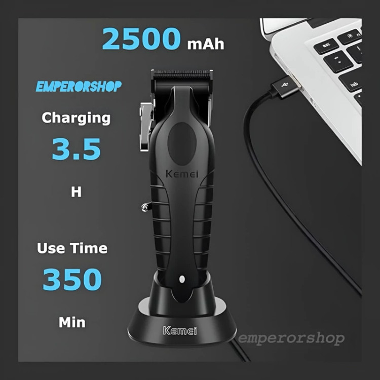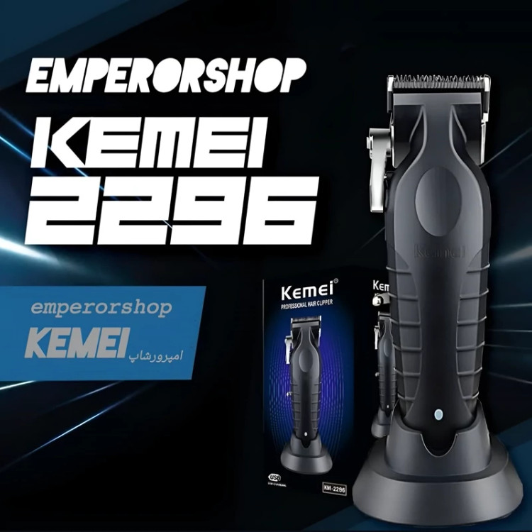 ماشین اصلاح حرفه ای کیمی KEMEI نسل جدید مدل 2296 اورجینال دارای استند شارژ حجم زن ریش تراش پروفیشنال (مناسب آرایشگاه)