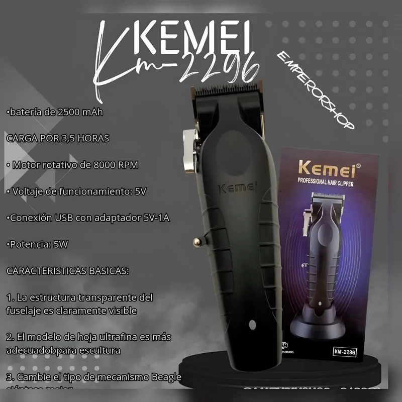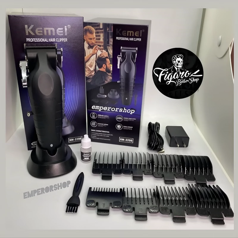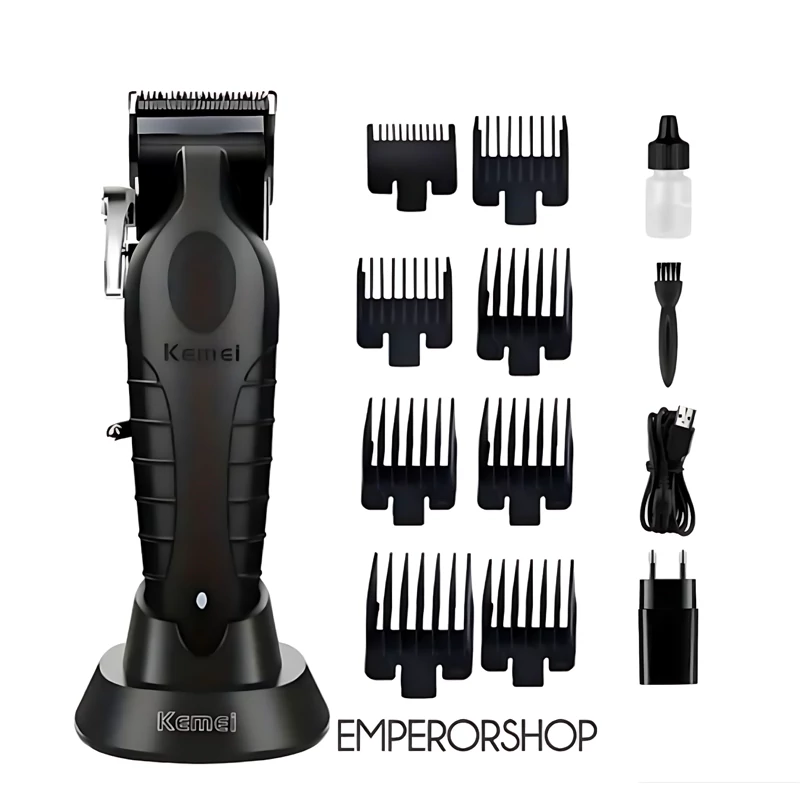 ماشین اصلاح حرفه ای کیمی KEMEI نسل جدید مدل 2296 اورجینال دارای استند شارژ حجم زن ریش تراش پروفیشنال (مناسب آرایشگاه)