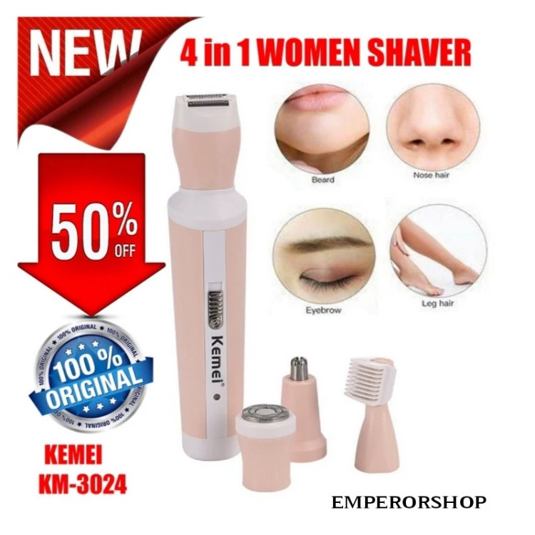 ست اصلاح صورت و بدن 4کاره کیمی مدل KM3024 (اصل) شیور و موزن کاملترین ست اصلاح بانوان اورجینال شارژی