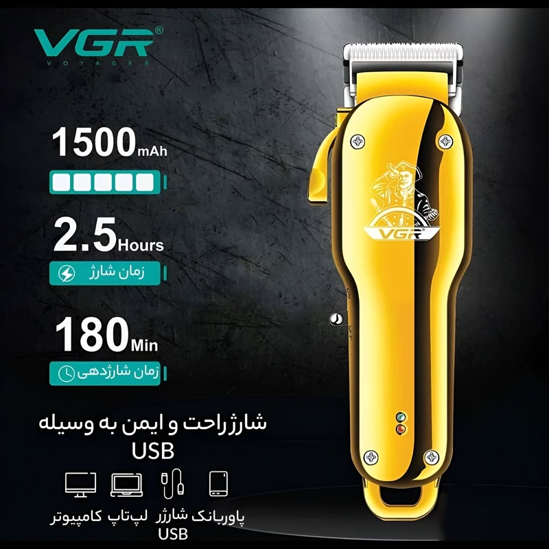 ماشین اصلاح سر و صورت خط زن و حجم زن حرفه ای وی جی آر VGR اصل