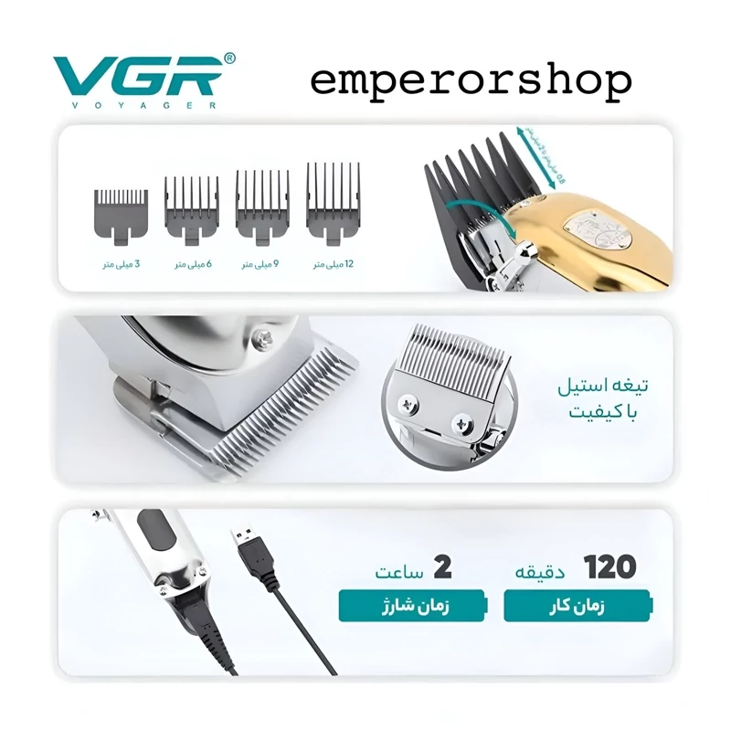 ماشین اصلاح سر و صورت VGR وی جی ار مدل V-652 اصل حجم زن خط زن ریشتراش حرفه ای vgr اورجینال